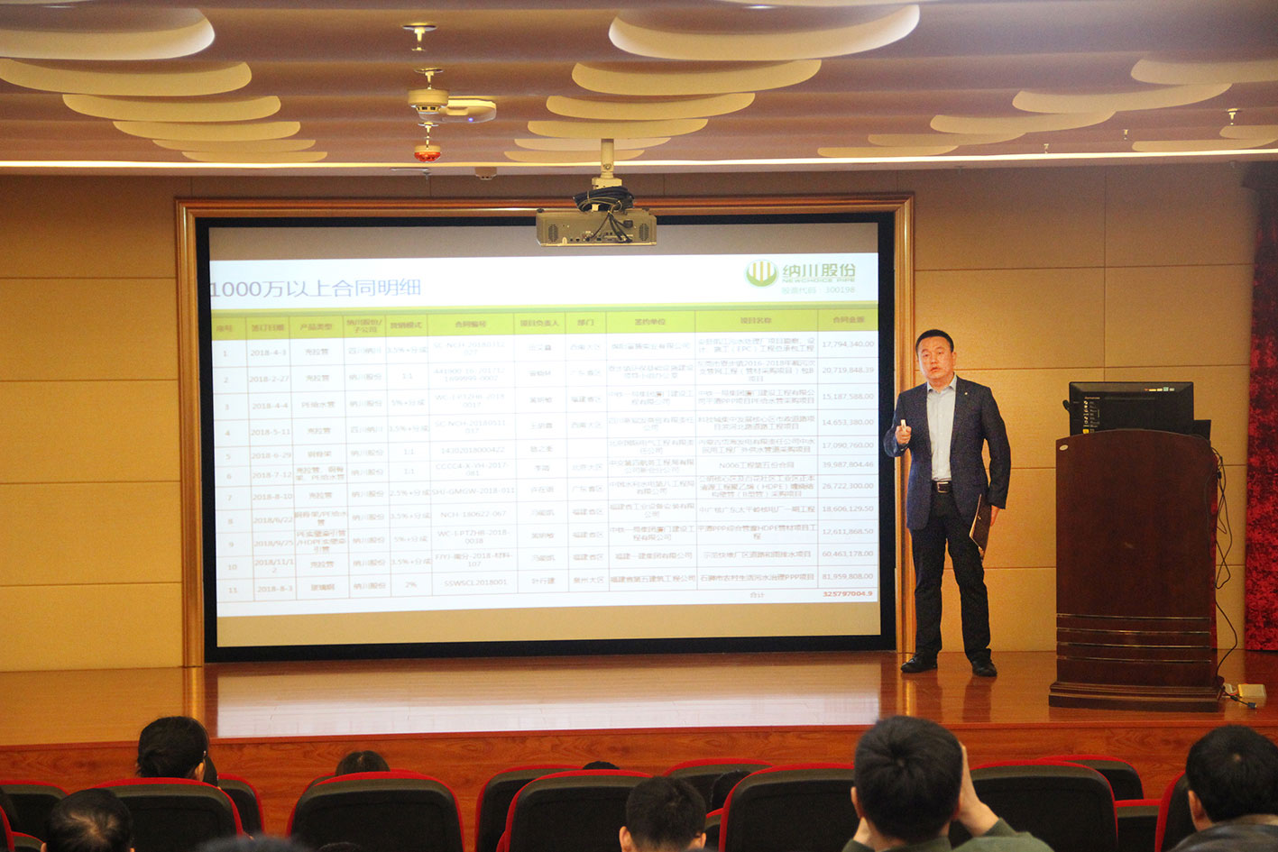 納川管業(yè)總經(jīng)理林藝輝從2018年銷售情況、未來趨勢(shì)、業(yè)務(wù)要求三個(gè)方面作了講解。并對(duì)全體銷售人員的辛勤付出及全力支持表達(dá)了由衷感謝,對(duì)未來工作發(fā)展中心和方向做出要求。