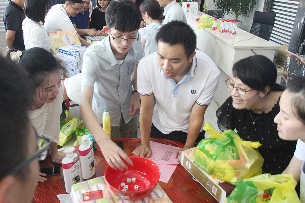 在骰子叮叮當當的清脆響聲中,氣氛不斷推向高潮,不斷爆發的歡呼是某些手氣爆棚的選手,搖出了大獎。骰子抖一抖,獎品就到手。伴隨著此起彼伏尖叫聲,每一位伙伴都收獲頗豐。看看大家拿到手軟的禮物以及臉上藏不住的笑意,就知道禮品有多么的豐厚了!